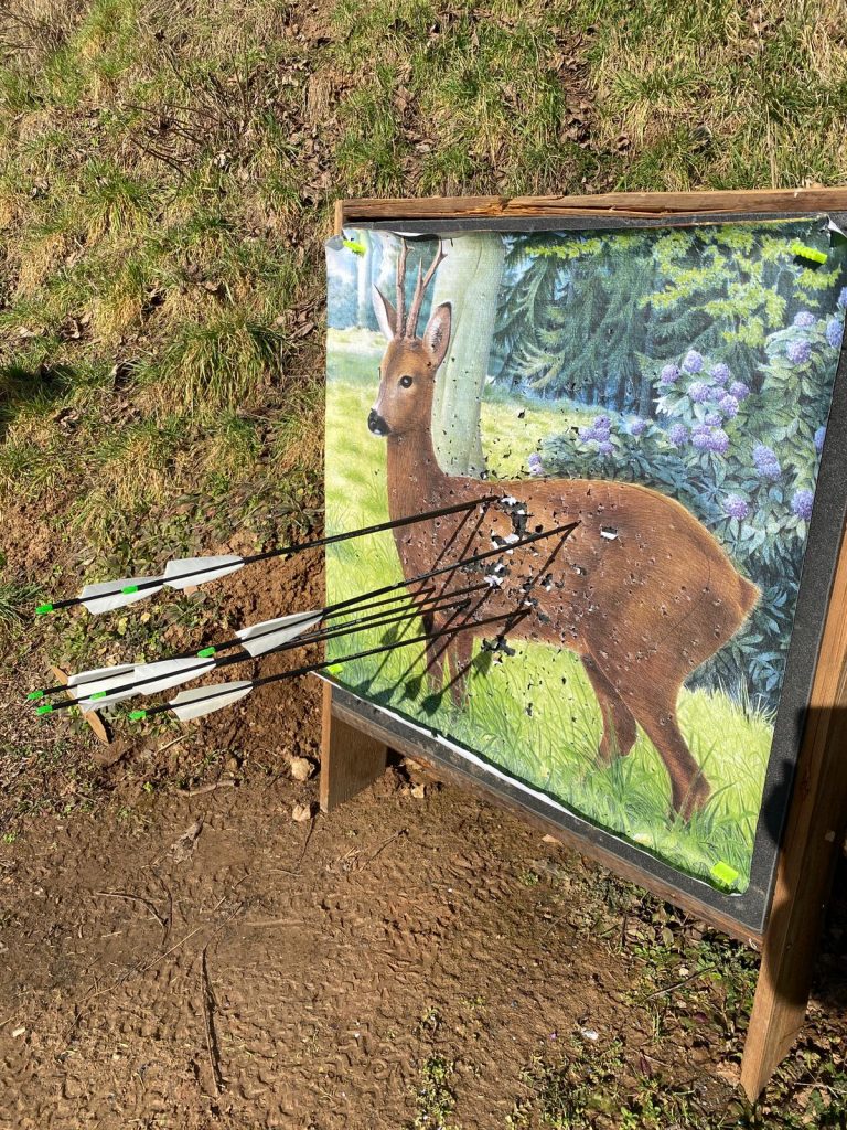 Habe ca. 160 Pfeile geschossen und alle sind zumindest auf der 80 x 80 cm Scheibe gelandet. Bis auf einer, der ist ca 5 cm drüber gegangen und im Hang gelandet.