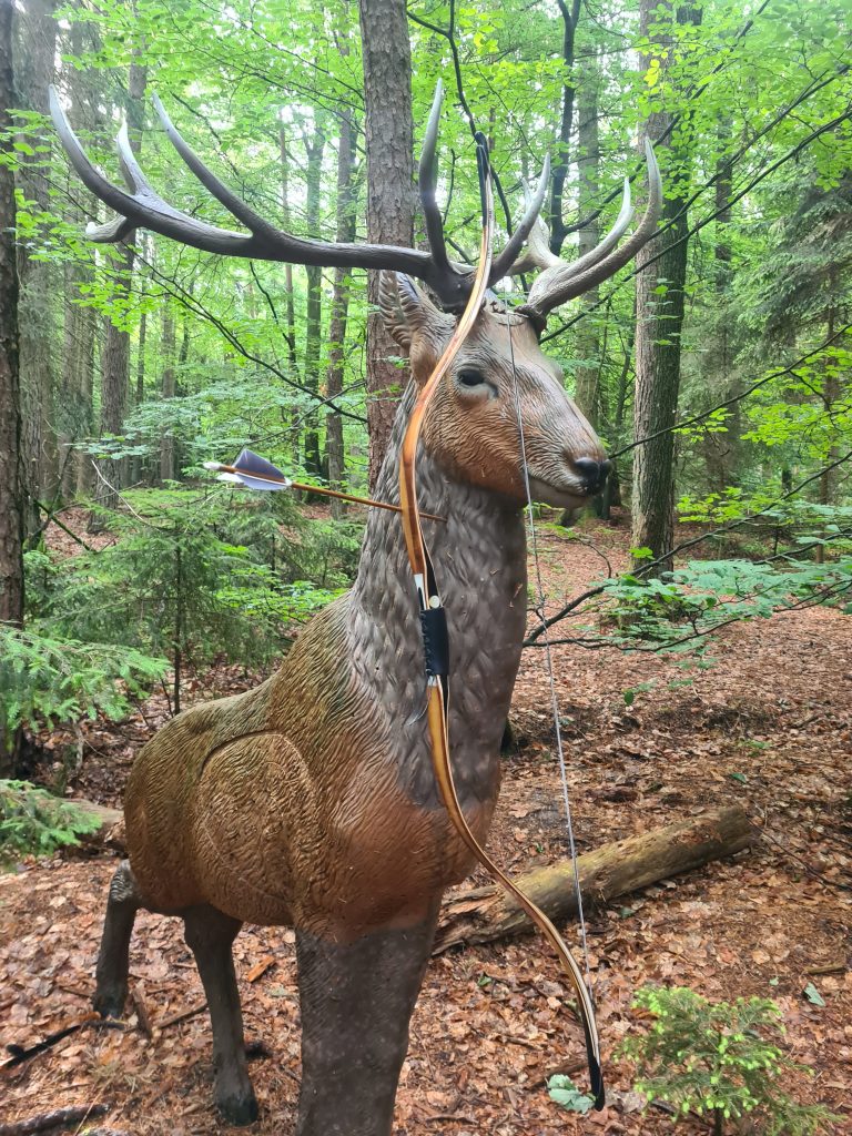 Ich bin heute ganz früh in den Parcours. Um 8 Uhr bin ich losgegangen, es war ekeliges Wetter, extrem schwül und weil es vorher geregnet hat, war es wie in der Waschküche. Ich habe mir 5 Pfeile mit 600er Spine und 125 Grain Spitze gebaut. Diese sind eigentlich für den koreanischen Bogen gedacht, aber wir haben festgestellt das dieses „setup“ eigentlich auch besser für alle meine 40 Pfund Ali Bows sein müsste. Also hab ich es mit dem Tang Dunhuang getestet. Ich hab kein einzigen Pfeil geschossen und bin direkt zu den Zielen. Dafür lief der Anfang echt gut! Die kurzen Distanzen fühlen sich richtig gut an mit diesem Bamboo Look Pfeil! Allerdings hatte ich dann bei etwas weiteren Zielen doch einige Probleme mit der Höhe. Ist aber auch logisch und war zu erwarten. Somit bin ich trotzdem mit 456 Punkten zufrieden. Außerdem hab ich keinen Pfeil verloren! Juhu