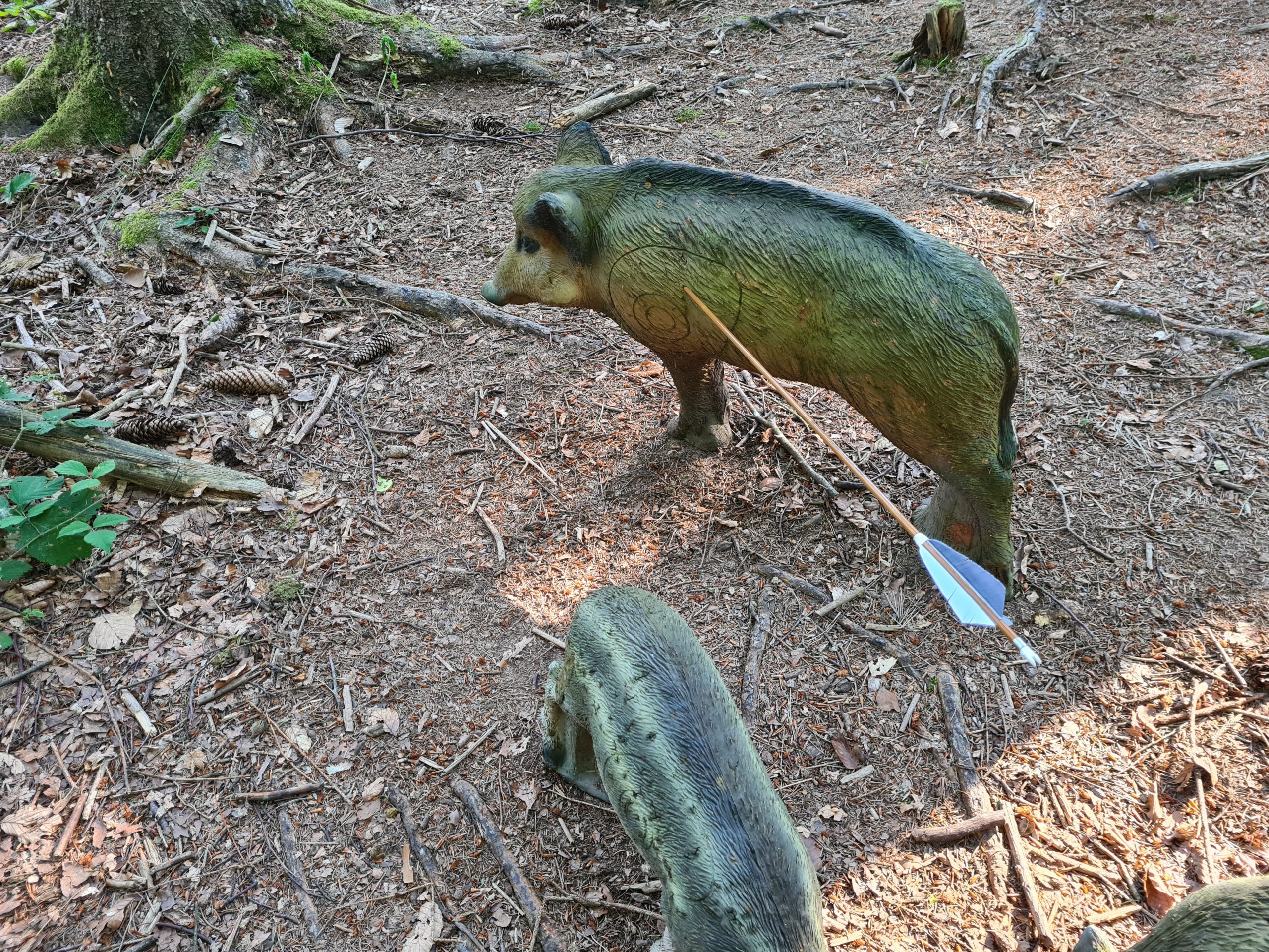 Am Ende hab ich dann nochmal nach meinem Pfeil am Einschussplatz gesucht und siehe da, Glück gehabt, tatsächlich unterm Gras gefunden! Somit musste ich nur eine Feder und Nocke austauschen (an anderen Pfeilen) und den aus dem Gras gut abwaschen und trocknen!