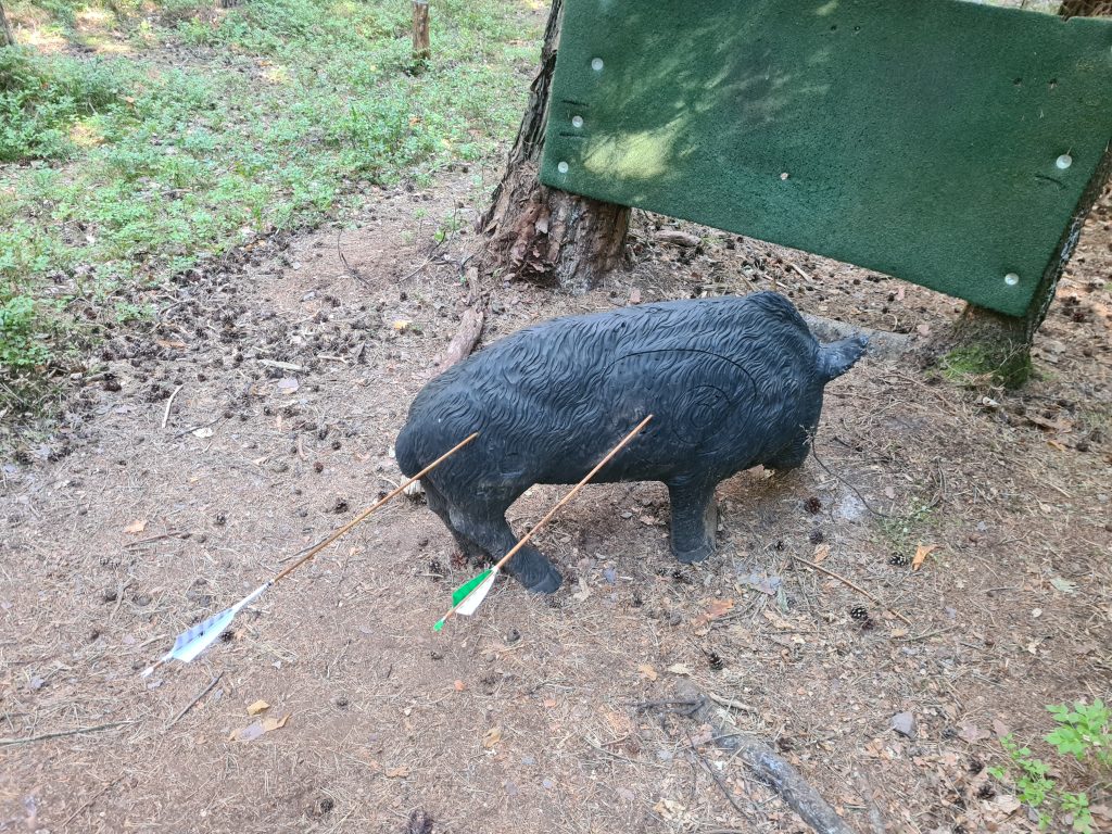 Bei Ziel 7 leider unter die Bergziege geballert und der Pfeil war weg. Ein zweiter Pfeil ist am Schaft abgebrochen, als er gegen einen Baum bei Ziel 14 geprallt ist.