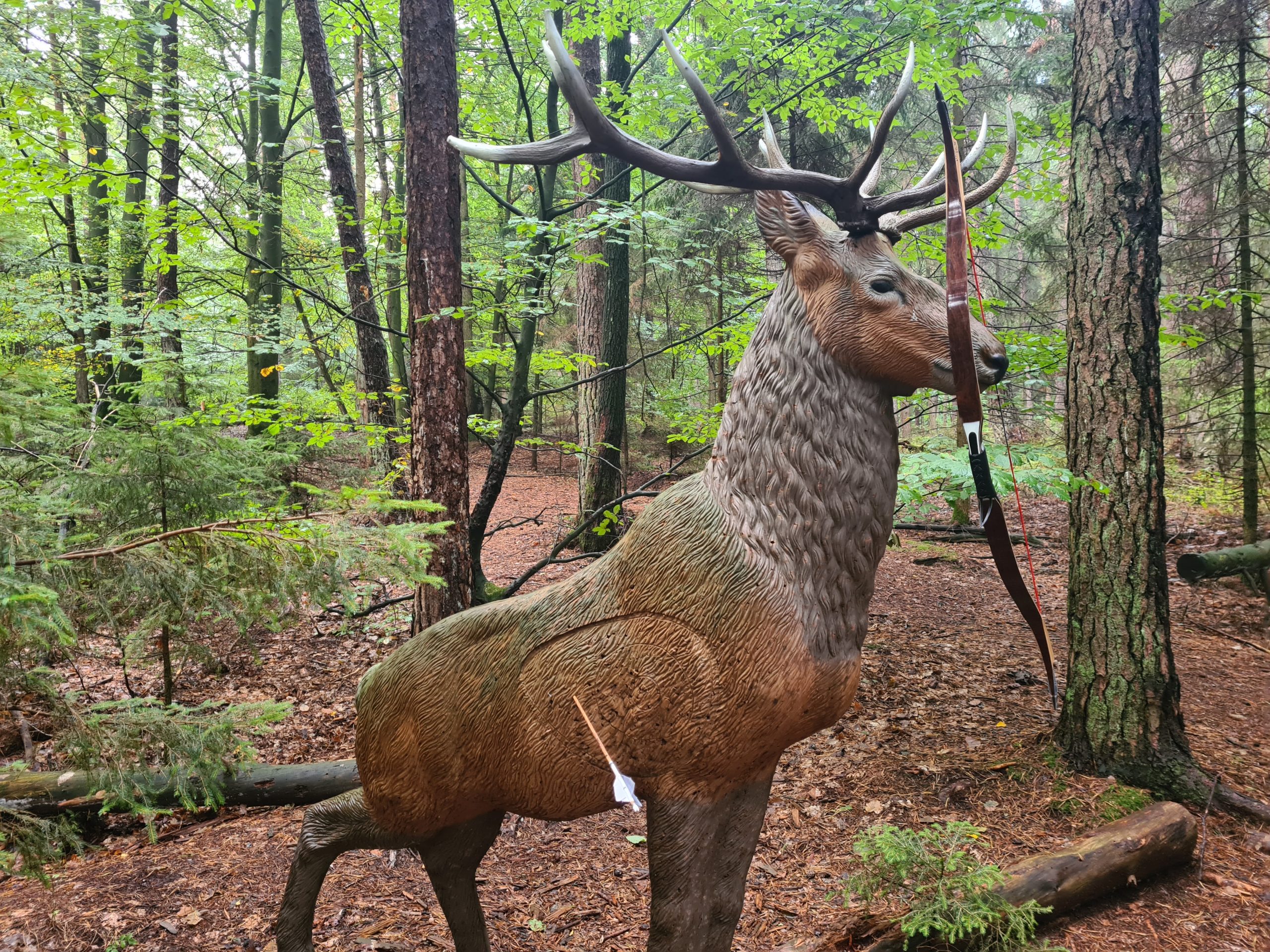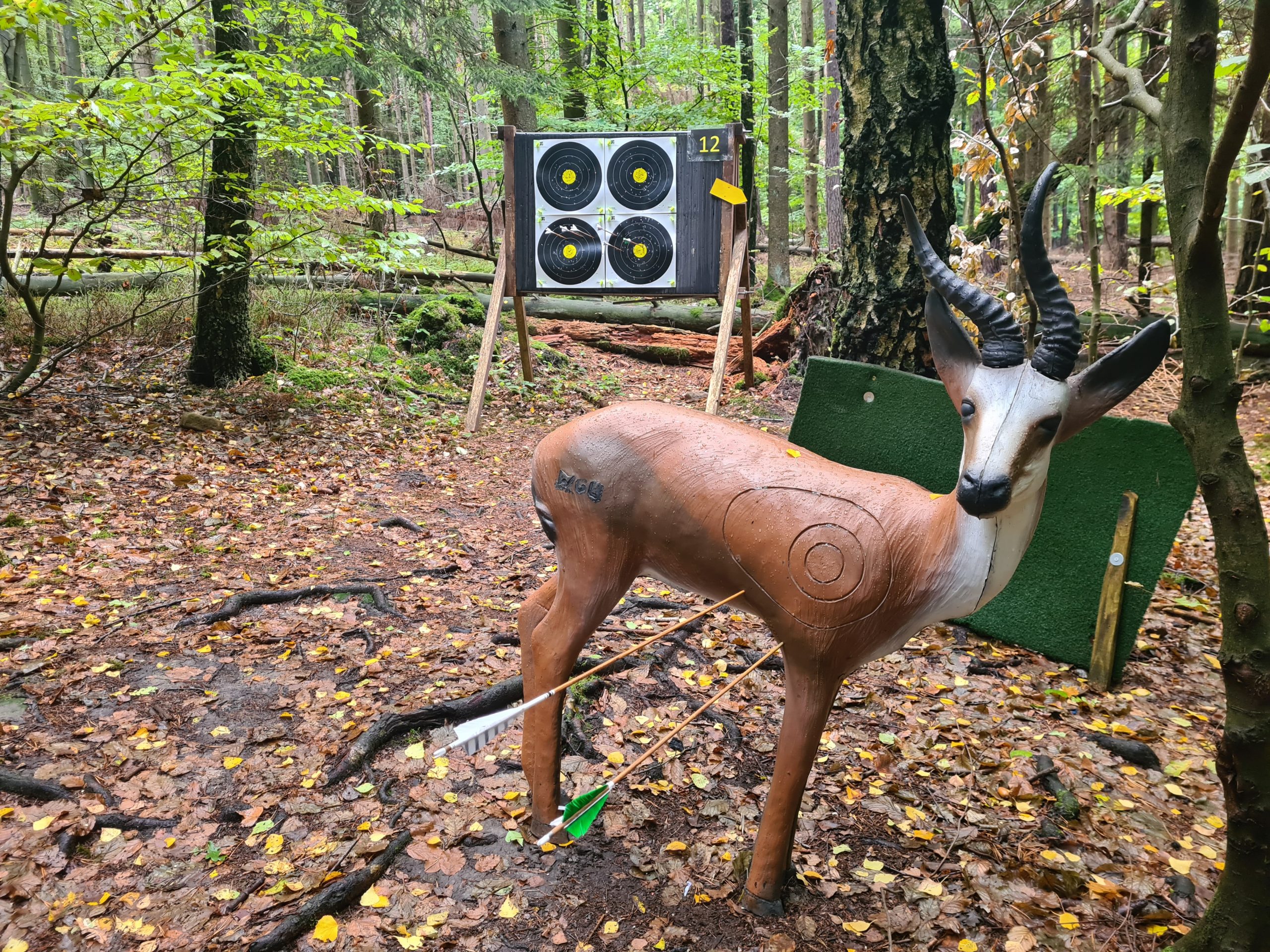 Wir haben unser eigenes kleines Scheibenturnier parallel zum normalen 3D Parcours geschossen. Die 10 von 12 Scheiben, welche auch gestern im echten Turnier geschossen wurden. Wir haben dabei beide einen Pfeil kaputtgeschossen, weil Metall getroffen. Die Pfeile waren gebrochen und schrottreif. Ich hab dafür einen Pfeil in der Fundtonne zurückbekommen. Die Federn müssen vermutlich allerdings erneuert werden. Das ist ja kein großes Ding. Im Scheibenturnier durfte ich wenigstens den Trostpreis abholen und hier mit 54 zu 48 gewinnen. Aber wirklich gut waren wir beide nicht. Ist ne ganz andere Disziplin und darin sind wir halt echt ungeübt.