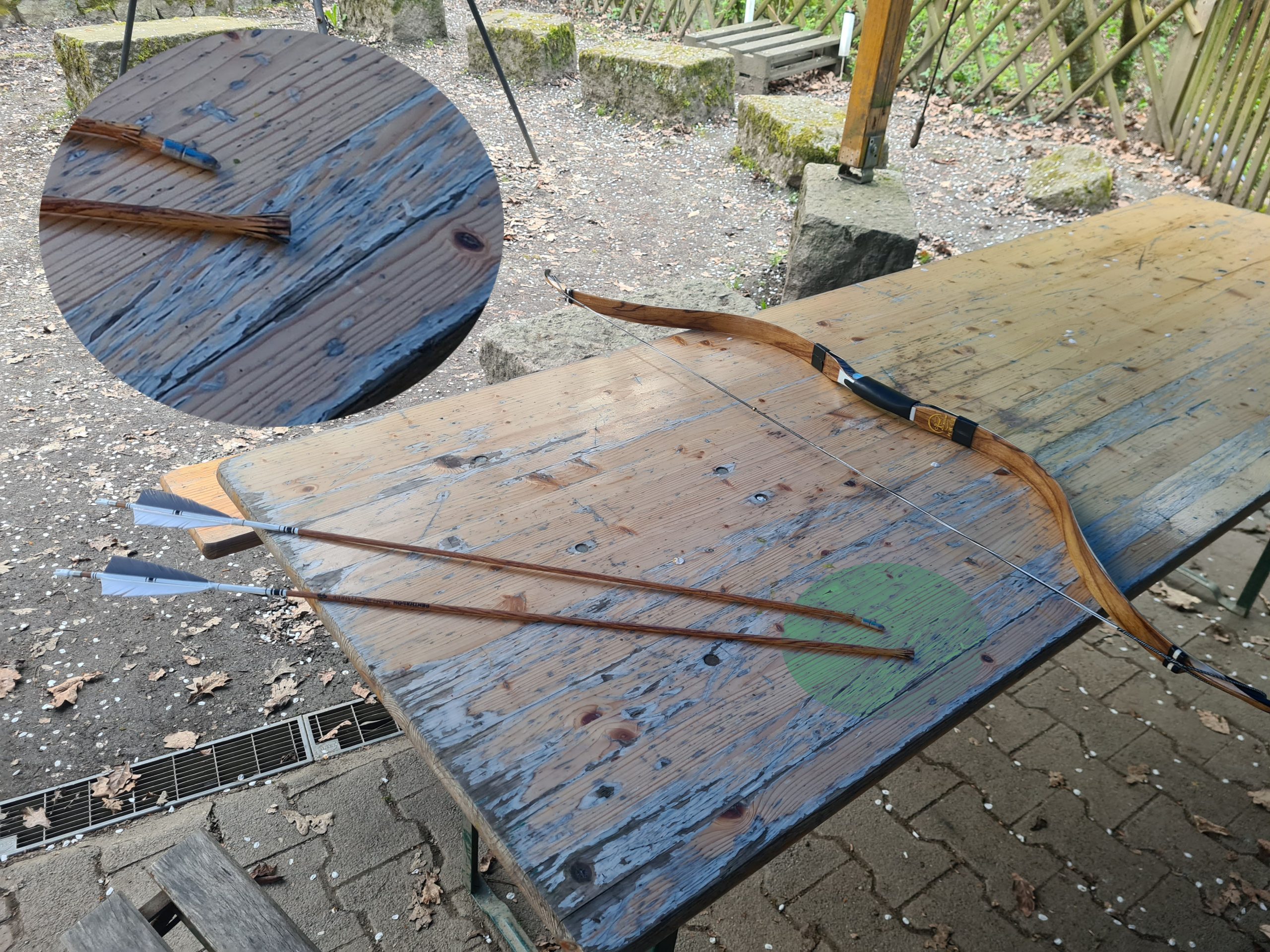 Wo ich immer mal auf die Pfeilspitze gucke (ist heute aber nicht passiert!) oder unkonzentriert bin (das ist passiert!), da macht sich Matthias immer einen Kopf wegen der Pfundzahl! Er denkt immer der Bogen wäre zu schwach, dabei ist das bei unseren Entfernungen gar nicht wahr! Aber gut, soll mir recht sein, wenn er sich auch sinnlos Stress macht, sonst hätte ich ja auch keine Chance 🙂